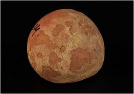 | Description / विवरण | A handmade terracotta sling ball, uneven circular shaped, rough surface, little chipped off from surface. |