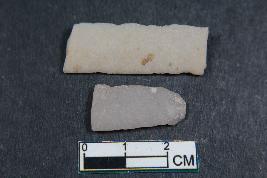 | Description / विवरण | Fragments of blades with two dorsal ridges .The smallest of them have bulb of percussion and they have smooth surface. |