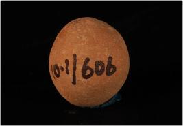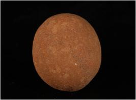 | Description / विवरण | A handmade terracotta sling ball, circular in shape, surface is smooth. |