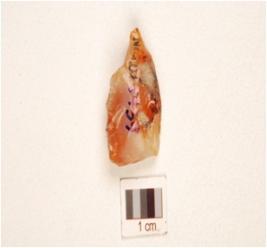 | Description / विवरण | A chalcedony core with six blade scars on surface and prepared platform. |
