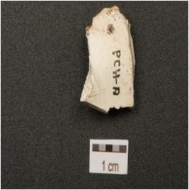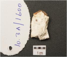 | Description / विवरण | End struck chert flake, chipping dorsal surface, positive bulb on ventral surface. |