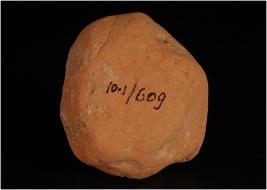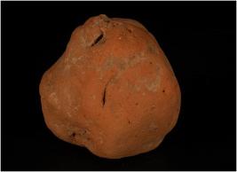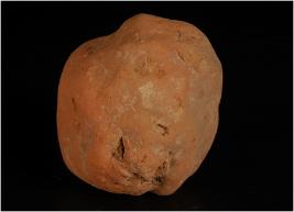 | Description / विवरण | A handmade terracotta sling ball, uneven circle shaped, rough surface. |