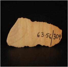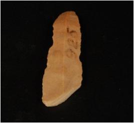 | Description / विवरण | A chert blade detach from a unprepared core, single ridge on the dorsal, bulb is absent and proximal and distal end is broken, use-ware marks along the cutting edges, triangular section. |
