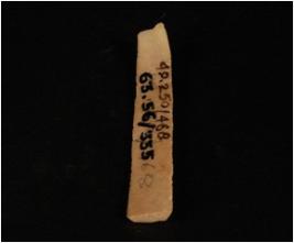 | Description / विवरण | chert blade parallel sided detach from a unprepared core, double ridge on the dorsal, and the bulb is absent use-ware marks along the cutting edges and trepezoidal section. |