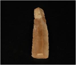 | Description / विवरण | Chert blade, double ridge on the dorsal, bulb is absent useware marks along the cutting edges and trepezoidal section. |
