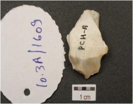 | Description / विवरण | Side-struck chert flake, chipping surface. |