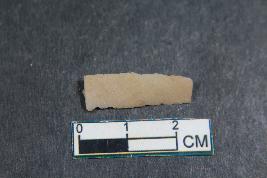 | Description / विवरण | Fragment of a blade with two dorsal ridges having smooth surface. |