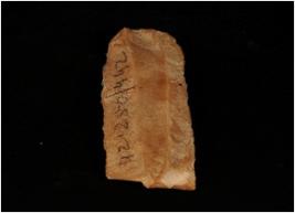 | Description / विवरण | Chert blade on ventral double ridge on the dorsal, bulb distal end is broken, useware marks along the cutting edge and trapezoidal section. |