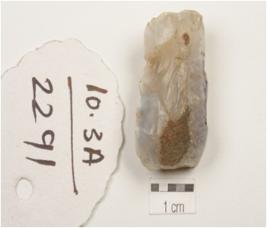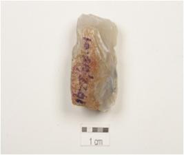| Description / विवरण | A core made on chalcedony, uneven shaped, flake scars on surface and cortex on dorsal side. |