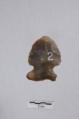 | Description / विवरण | Broad shape spear head. Tip portion is pointed and later expanded in corners. Butt end area is extended with a tenon in middle.Surface has various cut marks making it thin and light.Opposite side is comparatively smooth |