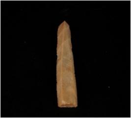 | Description / विवरण | Chert blade, double ridge on the dorsal distal and proximal end is broken and trapezoidal section. |