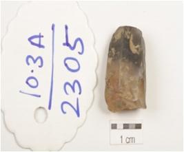 | Description / विवरण | A core made on agate, blade scars on both sides and uneven shape. |
