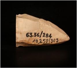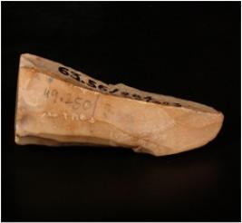 | Description / विवरण | A chert fluted core with prepared platform. 11 blades have been detached from core. |