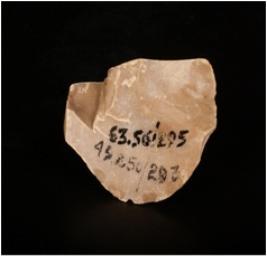 | Description / विवरण | A chert flake detached from prepared platform having useware marks and bulb. |