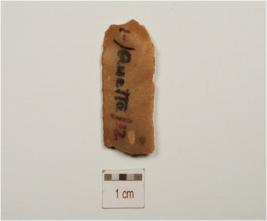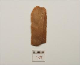 | Description / विवरण | A broken chert blade with diffused bulb on ventral double ridge on dorsal and use marks on cutting edges. |