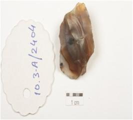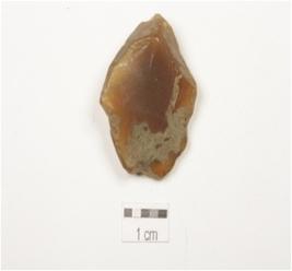 | Description / विवरण | End struck chalcedony utilized flake with triangular cross section. |