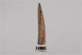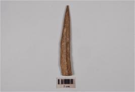 | Description / विवरण | A bone point with a pointed working end, has smooth and polished surface, upper part damaged and rectangular cross section. |
