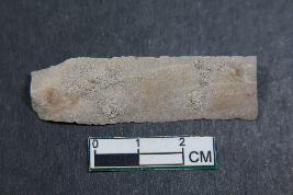 | Description / विवरण | Fragment of a blade with two dorsal ridges and a bulb of percussion on ventral side having smooth surface. |