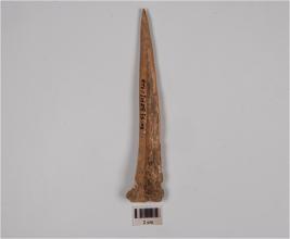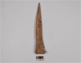 | Description / विवरण | A bone awl with a pointed working end, has smooth and polished surface, partly damaged and rectangular section. |