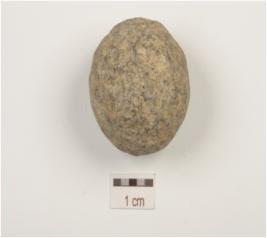 | Description / विवरण | A sling ball made of stone, circular cross section and rough surface. |