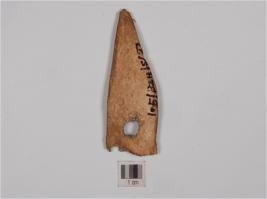 | Description / विवरण | A bone harvester with a pointed working end, has rough surface and a hole on surface. |