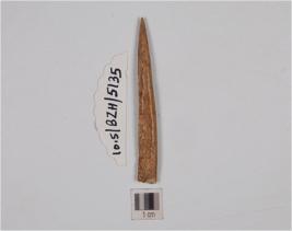 | Description / विवरण | Fragment of a bone point broken at one end, with pointed tip, rectangular cross-section and well polished. |