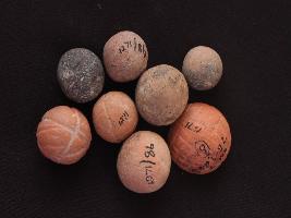 | Description / विवरण | There are eight balls made of baked clay. All the balls are of different shapes and sizes. One ball is damaged and its half portion is lost. Three balls are blackish. |