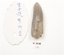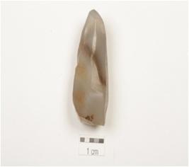 | Description / विवरण | A chalcedony core with blade scars and prepared platform. |