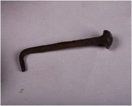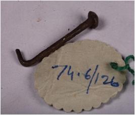 | Description / विवरण | Copper nail with a circular head and end is bent and partly broken broken. |