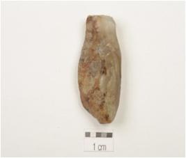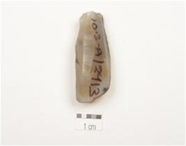 | Description / विवरण | Core made on chalcedony, prepared platform and blade scars on surface. |
