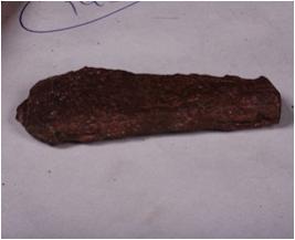 | Description / विवरण | Fragment of copper chisel with uneven surface .Broad at one end blunt at other end and rectangular section from broken end. |