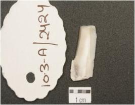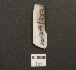 | Description / विवरण | Blade made on chalcedony, triangular cross section, both ends broken and one ridge on dorsal. |