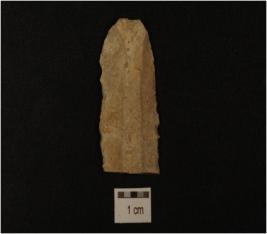 | Description / विवरण | A blade made on chert, double ridge on dorsal and bulb on ventral and use marks on working edges. |