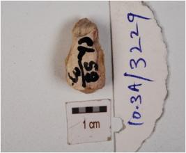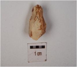 | Description / विवरण | A flake made on chert having ridge and flake scars on surface, irregular in shape. |