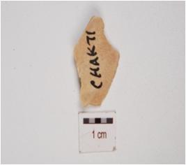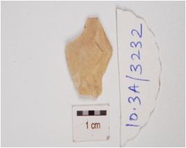 | Description / विवरण | A utilized flake made on chert, mid ridge and flake scars on dorsal, irregular edges, diffused bulb on ventral. |