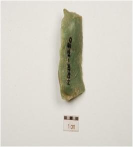 | Description / विवरण | A parallel sided chert blade with midridge on dorsal, bulb on ventral, prepared platform, triangular cross section, use wear marks on cutting edge and broken along distal end. |