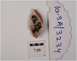 | Description / विवरण | A flake made on quartzite, having flake scars on surface, irregular edges and shape. |