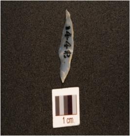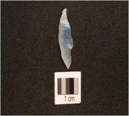 | Description / विवरण | A chalcedony blade, use-wear marks on right cutting edge. |