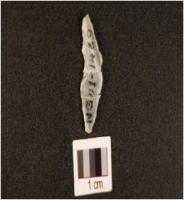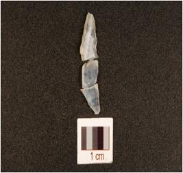 | Description / विवरण | A chalcedony fragments blade with use-wear marks on right cutting edge. |