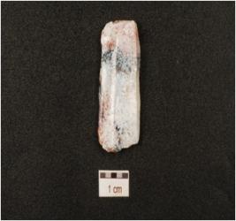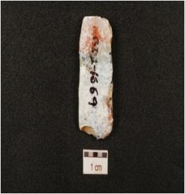 | Description / विवरण | A chalcedony core with four blade scars on surface and prepared platform. |