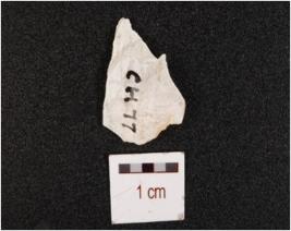 | Description / विवरण | Fragment of a chert debitage with flake scars on dorsal. |