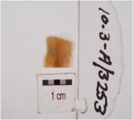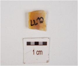 | Description / विवरण | Fragment of parallel side chert blade with one ridge and flake scars on dorsal, use marks along cutting edges. |
