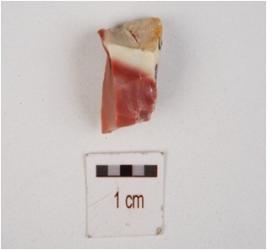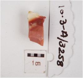 | Description / विवरण | Fragment of chert core with five blade and flake scars on smooth surface. |