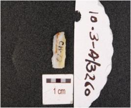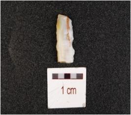 | Description / विवरण | Fragment of backed chert blade with one ridges and flake scars on dorsal side, use marks along cutting edges. |
