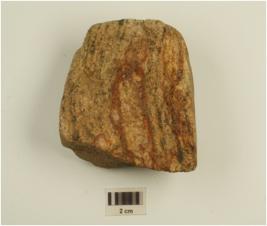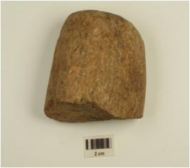 | Description / विवरण | Fragment of a hammer made on quartzite, partly broken. |