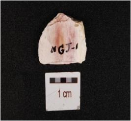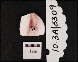 | Description / विवरण | A side struck chert flake edges are irregular and bulb on ventral. |