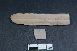 | Description / विवरण | Fragments of a blades with two dorsal ridges having smooth surface, one fragment has length 1.4 cm and Breadth 1.2 cm |