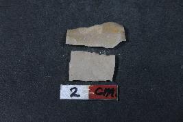 | Description / विवरण | Fragment of a blade with one dorsal ridge having smooth surface. Shorter blade along with two dorsal ridges has Length- 1.5 and Breadth- 1 cm. |