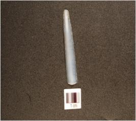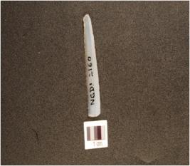 | Description / विवरण | A parallel sided chalcedony blade with prominent mid ridge on dorsal, use-wear marks on cutting edge and triangular cross section. |