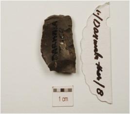 | Description / विवरण | A flake made of chert, flake scars on the surface. |